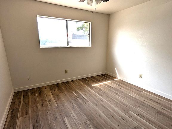 This 2 bedroom 1 bath home features new laminate flooring and paint throughout. Large living area with kitchen. Heating & cooling, 1-car attached garage with laundry hookups and enclosed backyard close to schools as well as shopping and restaurants. Water/Sewer/Trash is included.