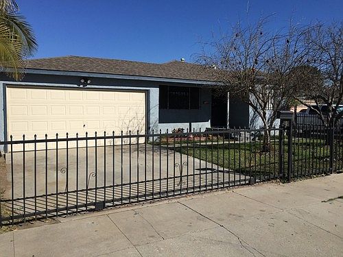 Updated three bedroom one and a half bathroom home. Large galley kitchen with breakfast/dining area. Laundry room in the house with all new paint and flooring throughout. The backyard is large with a great covered patio. Large attached two car garage and gated front yard.