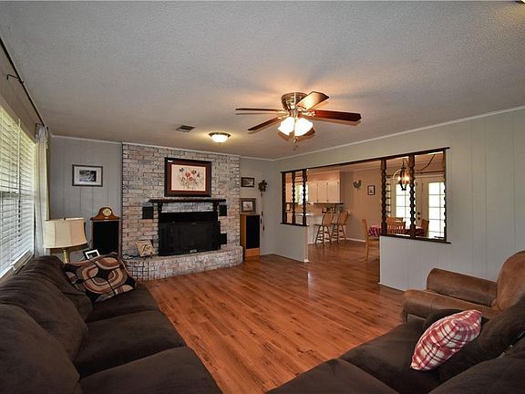 This beautiful, well maintained home is situated on just under 2 acres and tucked away in a quiet neighborhood. Mature shade trees, some landscaping and a fenced in backyard that host a workshop. The home has been freshly painted. The open kitchen features brand new quartz countertops, sink, & disposal along with a nice breakfast bar! The seller just updated the electrical with new plug ins, and light switches. Just off the dining area is French doors to a covered back patio! A wood-burning fireplace insert. There is laminate flooring and a completely renovated Master bath. This is a GREAT HOME in a wonderful community with city sewer & water!