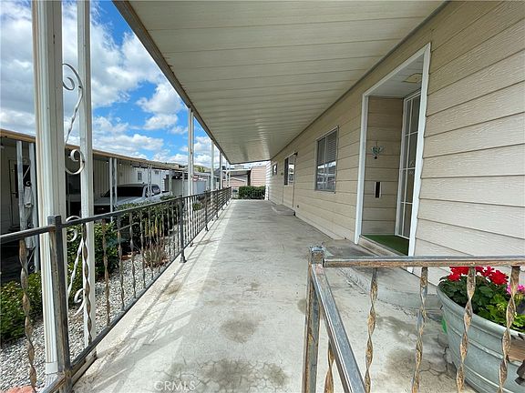 This spacious home in Lakeview Estates, located in Yucaipa's highly sought-after family park, offers a separate living room and family room. It has the potential to be easily converted into a 3-bedroom home. The kitchen boasts ample cabinet and counter space, a pantry, and a breakfast bar. The master bedroom provides ample space and a walk-in closet, while the master bath features a full-size low-profile shower with an enclosure. The guest bedroom is a large room with a walk-in closet, and the guest bath includes a shower over a tub. Outdoor amenities include a spacious concrete front porch, a 2-vehicle carport, and a large shed for extra storage.