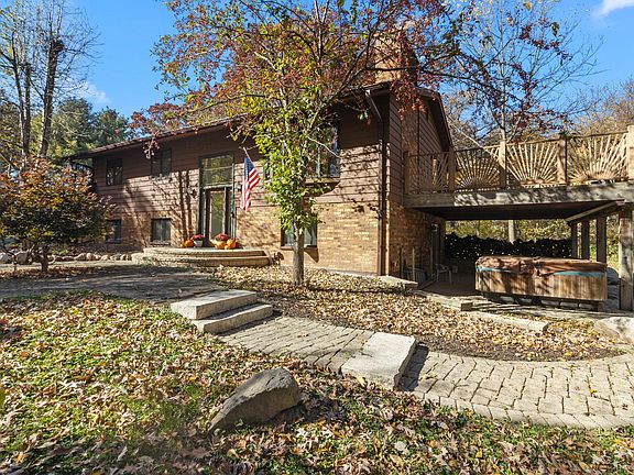 Extremely hard find these days!!! 15.8 acres in 2 parcel numbers (7.6 w/house & 8.2 land) Start down this winding blacktop driveway as it leads to this 3 or 4 bedroom raised ranch home with 2300+ square feet of living space. Main floor boasts a living room with brick woodburning fireplace. kitchen/dining opens to a spacious deck overlooking wooded setting. 3 bedrooms on this main floor with 2 baths. Lower walk out with family room and woodburning stove and sink/counter area continues to a covered patio; 1 more bedroom with double closets and supersize laundry room with loads of cabinets and counters, plus a full bath. 2 car attached garage. Additional 2++ car detached workshop w/electric and overhead door. Many mature trees, lovely stocked pond (fish or swim), walking paths, plus 6 + acres of pasture land. Come and experience this private peace of heaven. Buyer to verify total acreage.