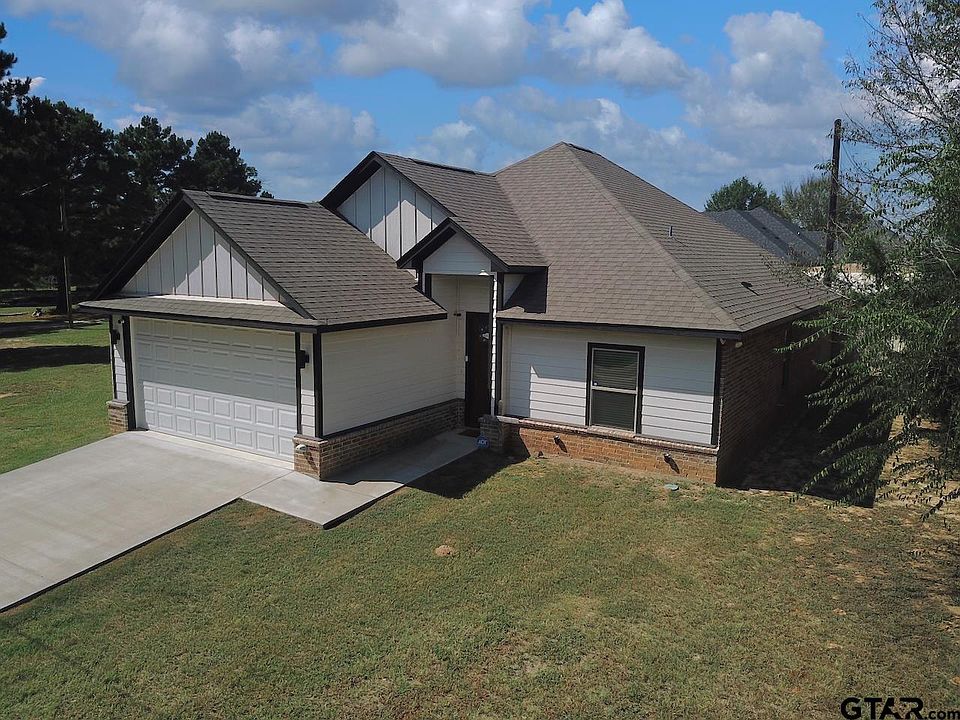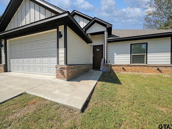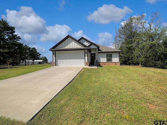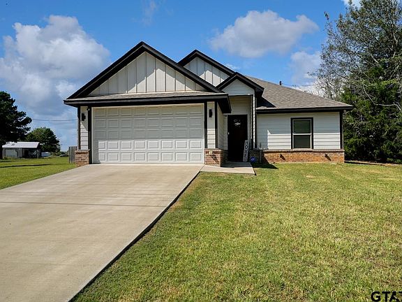 Built in 2021, this beautifully finished home offers the perfect blend of style, function, and location. Situated just minutes from Tyler, with easy access to I-20 and Loop 49, this property provides the ideal balance of peaceful living with quick access to shopping, dining, and major roadways. Step inside to find a spacious split-bedroom floor plan designed for both comfort and privacy. The large living area flows seamlessly into the dining space and custom kitchen, creating an inviting layout that’s perfect for entertaining or everyday family life. The kitchen features granite countertops, an intricate tile backsplash, and abundant cabinetry and counter space—a dream setup for any home chef. You’ll love the high ceilings and detailed trim work throughout the main living areas and owner’s suite, adding a touch of elegance and craftsmanship to every corner. The owner’s suite includes a private bath complete with double vanity, water closet, and dual walk-in closets for plenty of storage and convenience. Outside, the fully fenced backyard offers space to relax, garden, or play—complete with a storage building for tools or hobbies. If you’ve been searching for a move-in ready home with thoughtful finishes and a fantastic location, 11051 Happy Acres checks every box.