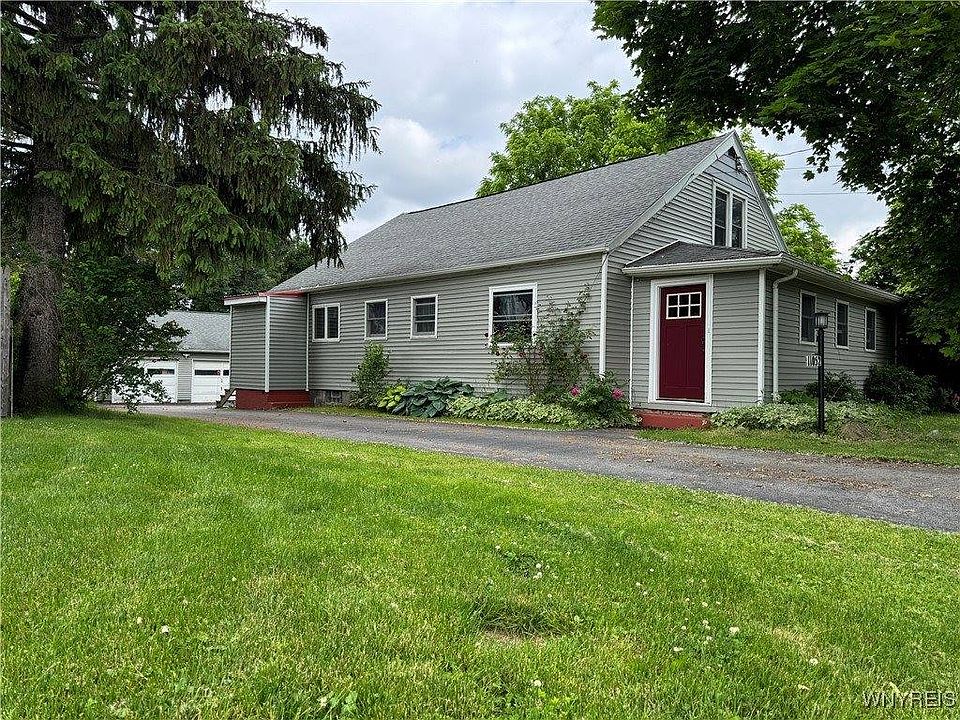 Check out this cozy Cape Cod, it could definitely prove to be the gem you have been searching for! Lovely custom designed kitchen including fashionable granite counters w/stainless appliances included, ceramic tile flooring. Totally renovated bath with bluetooth & deep soaking tub. Generous 1st floor laundry room also renovated to allow for ease of use. Formal dining room with open loft to 2nd floor. Access to sunroom from living room, 1st floor bedroom access complete with French doors. 2 additional bedrooms on 2nd floor both with new flooring. Fresh paint throughout and natural woodwork! ~ 2.5 car detached garage with water, electric, excess second story storage and natural gas, double wide parking area. Plenty of room for your projects. .37 acre lot has ample yard space for entertaining or gardening, fruit trees! Newer siding, windows, central air, forced air furnace, roof 2018. Convenient location to Geneseo, Batavia, Warsaw & NYS Thruway exit in Leroy.