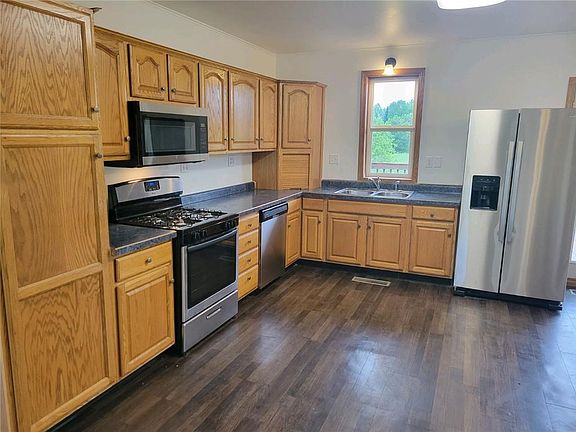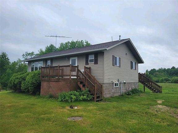 Just 1/2 mile South of Radisson is this recently remodeled three bedroom, one bath ranch-style home on 20 acre providing lots of privacy (no neighbor visible from house) with large garage (approx 1600 sq ft) and lean-to for all your storage needs. All new kitchen appliances included. New furnace, AC, pressure tank, pex plumbing, most carpets, bath cabinet, tub and surround. Garage has cement floor and part is insulated. Walk-out basement with family room, third bedroom, spacious work room and mechanicals/laundry room.