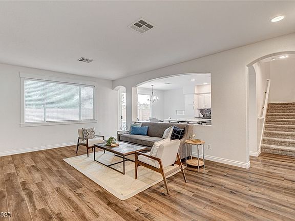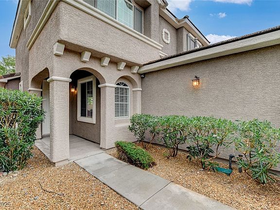 Welcome to this beautifully refreshed 3 bed + Den, home in the heart of Summerlin South! With fresh interior paint & neutral flooring, the inviting layout creates a warm, move-in ready atmosphere from the moment you step inside. The spacious great room flows seamlessly into the kitchen, which features ample cabinetry, sleek countertops, black stainless steel appliances, and a center island. Upstairs, the primary suite offers a true retreat w/ a walk-in closet & a spa-inspired en suite bathroom showcasing a dual-sink vanity, a walk-in shower, & a separate soaking tub. Step outside & enjoy your own private backyard oasis, complete w/ a sparkling blue pool, waterfall spa, & a turf side yard. Additonal features include watersoftener, closet auto lights & garage zoned AC.