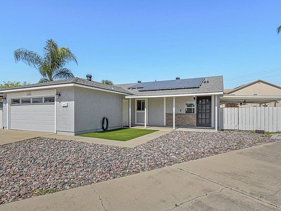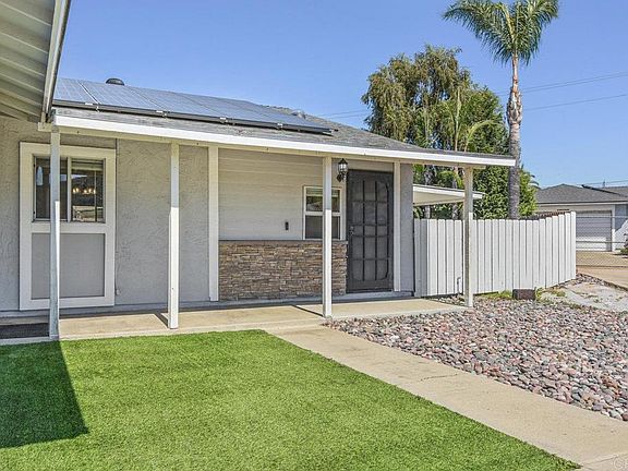 This beautiful updated single story home in Santee offers 3 bedrooms, 3 bathrooms and 1760 Sqft. Backyard is a huge place to play, bbq and host many parties! This home has a newer kitchen with many upgrades, with boasts a spacious island great for entertaining.Most of the home has ceramic tile and the family room is bright and spacious with plenty of room. Primary Bedroom has its own wing of the house with a good size walk in closet. This Home has paid solar!!!! **Bonus room in a portion of the garage that can be converted back.The bonus room has AC.** Close to schools, parks, shopping, and hiking trails.