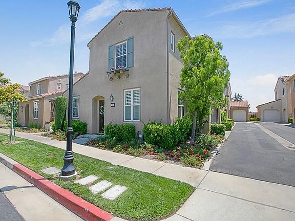 Welcome to this stunning detached end-unit townhouse in the highly sought-after gated community of Tuscany in Porter Ranch. This elegantly designed detached townhouse offers privacy with no common walls, this light-filled home boasts sophisticated designer touches throughout and is situated in a quiet location on the East Side of Tuscany. Ideally positioned on Ghiberti Way as a corner unit, you're just steps from the common areas, guest parking and quiet evening walks. Step inside to a formal entryway leading to a separate formal living room and an open-concept kitchen, featuring granite countertops, stainless steel appliances (including a refrigerator), and a formal dining area. The private patio is a serene retreat, beautifully enhanced with pavers, a charming fountain, and lush flowers on a drip system perfect for relaxation or entertaining. The second level offers a spacious primary suite with a walk-in closet, as well as a secondary bedroom with a private en-suite bath and ample closet space. The landing area doubles as a versatile loft space, complete with extra storage and an alcove ideal for a mini office. Plantation shutters adorn every window, adding both style and functionality. Additional highlights include a direct-access attached two-car garage with side-by-side parking, washer & dryer hookups, and a built-in trash compactor. Located within the award-winning Porter Ranch Community School district, this home is just a short walk to "The Vineyards" plaza, offering luxury amenities such as Whole Foods, Lure Fish House, Mendocino Farms, Philz Coffee, AMC theaters, La Popular, Gus's BBQ and much more. 12 month Min No Airbnb No Vacation rental No smoking All tenants over 18 must apply.