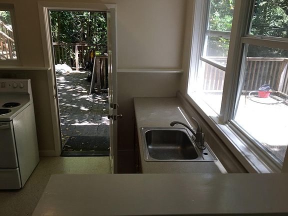 1/1 lower unit of duplex. Newer counter and some newer cabinets in kitchen. Large living room with closet, French doors to large deck space. Bedroom is big enough for king bed. Easy in and out to River Rd. Water and garbage paid. No smoking. No Cannabis cultivation. No Pets.