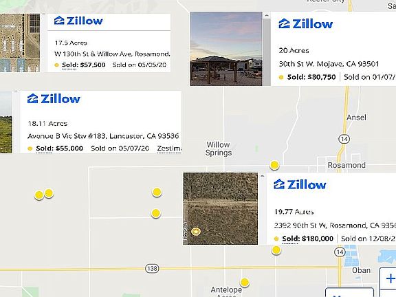 Would you like to own a piece of Southern California, where desert living could be yours? Then this 20 acre property in the Western Mojave Desert is waiting for you and it is priced BELOW MARKET VALUE. Located in the Antelope Valley of the western Mojave Desert, with the San Gabriel Mountains as a backdrop, this lot is only 2 hours away from Los Angeles. Cacti, wildlife, and open spaces abound. Beautiful natural landscape with amazing views of both, mountains, and desert. Build your dream home or enjoy the quiet open space. Located close to a freeway, shopping, and a private airport. There are plenty of sightseeing and recreational activities all around. The Antelope Valley has a variety of cities nearby, from Rosemond (24 minute drive), to Mojave (27 minute drive), and the historic Bakersfield (1 hour drive). This lot is far enough from the city but close enough to all the amenities. There are plenty of activities to do year round, from the Basque festival, to the Poppy Festival, and the Willow Springs’ auto racing, as well as a variety of shopping and dining options in the different cities nearby. The property is about 45 minutes away from Edwards Air Force Base. This property has all that the California Desert has to offer and more!