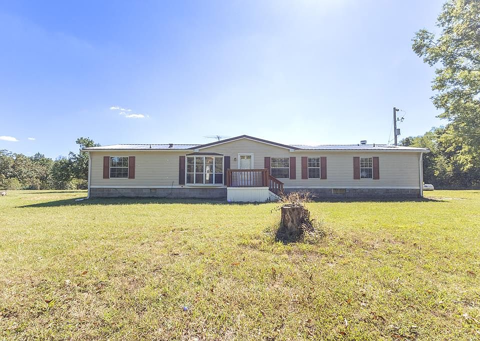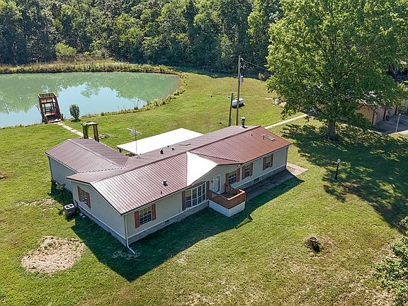 Sitting just off Hwy 24 in a peaceful rural setting, this 3 bedroom, 2 bath manufactured home on 41 acres offers 2,328 sq. ft. of living space. Inside, you'll find a spacious kitchen with plenty of storage, a main floor laundry room, and a large master suite with an updated bathroom. The home also features a media room for family nights, a generous living area, and a partial basement for extra storage or storm shelter. The sellers are also offering a $3,000 flooring replacement allowance, giving you the opportunity to update the home to your style. Step outside to your back deck overlooking a beautiful stocked pond with a two-story dock—perfect for fishing or relaxing. A second pond and trails winding throughout the wooded acreage add to the property's recreational charm.