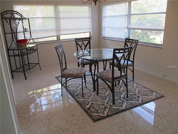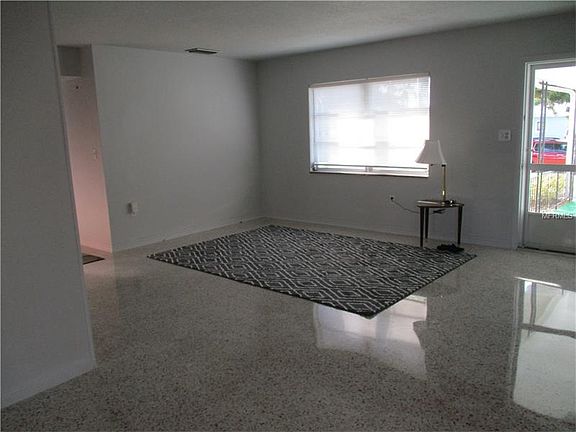 You will love this house. Quiet neighborhood, lots of curb appeal. Newly refinished terrazzo is stunning. Pond view in back. Inside bath has been updated, as well as half bath in garage. Washer/dryer in garage left for convenience of tenant. Lawn service included. Florida room gives extra space, as well as a lovely place to sit and look at the water. Kitchen is vintage, but in excellent condition.