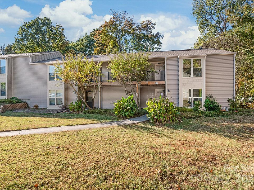 Charming 2-Bedroom GEM in a PRIME LOCATION! You’ll love this cozy home that’s close to everything—shopping, schools, hospitals, and more! Luxury vinyl plank flooring in the main living areas. The kitchen features granite counters, tile backsplash, and black appliances. You'll love the modern cabinet color in the galley-style kitchen, which features a breakfast bar and an adjoining breakfast area. Gather in the large great room with fireplace, perfect for relaxing or entertaining by the beautiful brick fireplace. The spacious primary bedroom features a walk-in closet and an ensuite bath. The second bedroom also has its own full bath. Relax on the covered balcony with a park view. See it for yourself—this one’s full of potential and ready to welcome you. The community features an outdoor pool, a dog park, and green common areas. Enjoy great shopping and entertainment options nearby, as well as proximity to the nearby greenway and convenient access to Interstates 485 and 77. **RECENT UPGRADES: Added luxury vinyl plank flooring throughout the main living areas, new guest toilet, master bathroom shower tiling, water heater replacement, new electrical breaker, and added kitchen tile backsplash on the back wall, as well as removal of the popcorn ceiling in the master bedroom. ** You don't want to miss this opportunity!