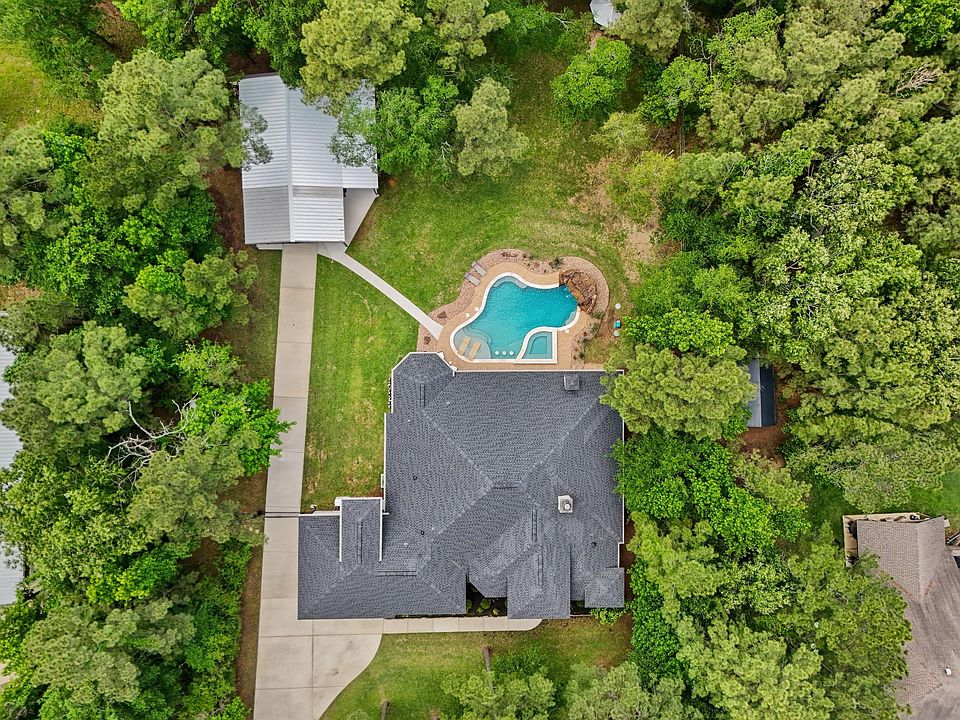 Nestled in a serene setting, this Mediterranean-style stucco home offers 4 spacious bedrooms and a flexible 5th room, perfect as a game room or guest suite, complemented by 4.5 baths. The primary suite features a private seating area, a luxurious bath with a walk-in shower, Jacuzzi tub, and dual vanities. Throughout the home, high ceilings and refined faux paint finishes evoke a sense of timeless elegance. The outdoor oasis includes a heated pool with a grotto, diving rock, and a 10-person Jacuzzi. An outdoor kitchen with Le Griddle, sink, and storage is paired with a wood-burning fireplace on the patio. A 22KW Generac whole-house generator ensures peace of mind. The property also includes a two-car garage and a 26x26 barn-style shop with a covered gable roof for extra storage. No HOA!