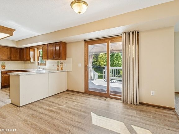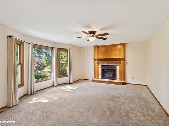 Spacious and well-maintained 4-bedroom two-story backing to a walking trail. You'll love the welcoming curb appeal with mature trees, established landscaping, and a charming front porch. The main level offers a flexible front room, large living room with fireplace and open kitchen and dining area with sliders leading to an oversized deck, perfect for enjoying the peaceful backyard. Upstairs, you'll find three generous bedrooms and two full baths, while the finished lower level adds great bonus space with a rec room, fourth bedroom, ¾ bath, and laundry area. Recent updates include driveway concrete leveling (2024) and a leaf-protection gutter system (2024) for low-maintenance living. Major system upgrades within the last 5-10 years include vinyl windows throughout the home, UV window tint on the main level for extra comfort, roof shingles, HVAC system, and flooring. A 3-car garage provides plenty of room for vehicles, storage, or hobbies. Move-in ready and conveniently located near trails, library, and grocery stores.