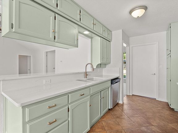 The open-concept kitchen overlooks the living room and breakfast nook and features quartz countertops, painted cabinets, and a modern faucet. The primary suite includes an updated bath with a ceramic tile shower, thick frameless glass enclosure, and dual vanities. Fresh interior and exterior paint, a cozy wood-burning fireplace, dedicated office, laundry room, and two-car garage add to the appeal.