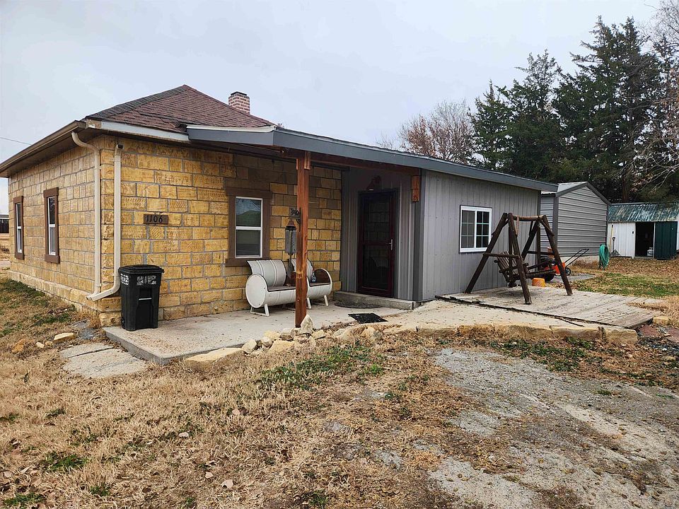 This home packs a punch when it comes to character!! The limestone walls, thick wood trim, and small but cozy interior give this space a cottage feel. Tile floors throughout the main living areas, and carpet in the bedroom. There is one bedroom and one bathroom in the home, with the option of an additional room in the home being used as a second bedroom. The property sits on a large corner lot, with a small storage shed and an oversized, enclosed one car garage, as well as a spacious, stained concrete patio. Appliances in kitchen to remain with property, as well as the Bad Boy 42in mower. This space would make a great rental, Airbnb, or hunting lodge. Invest today!!! Call Amber Ruggels, Realtor today at 785~639~2111 for your personal tour..