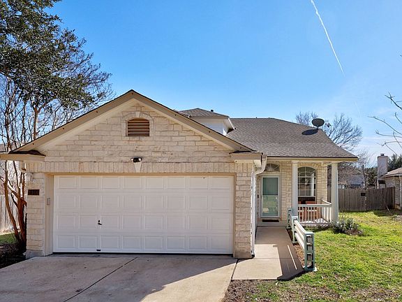 Welcome to 1106 Bohica Way, a stylish and well-maintained 3-bedroom, 2.5-bath home tucked away on a quiet cul-de-sac in Cedar Park. With no carpet, this home features bamboo, laminate, tile, and vinyl flooring throughout. The open floor plan includes a spacious living area with vaulted ceilings, a cozy fireplace, and a kitchen equipped with granite countertops, a gas range, microwave, dishwasher, and refrigerator. The primary suite is located on the main level and offers a soaking tub and walk-in closet. Additional highlights include interior laundry hookups, high ceilings, and multiple ceiling fans for added comfort. Outdoors, enjoy a private fenced yard, covered patio, front and rear porches, and mature trees. The attached 2-car garage and paved driveway provide parking for up to four vehicles. Community amenities include a pool, playground, sidewalks, trails, and streetlights. Pets are welcome. Conveniently located near major roadways and local favorites such as H-E-B, Lakeline Mall, and restaurants like Blue Corn Harvest, Dos Salsas, and Mouton's Southern Bistro, this home offers the perfect blend of comfort, convenience, and community living. Tenants will be required to enroll in the Resident Perks Program at $25/month per household.