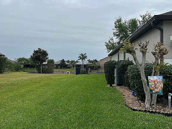 Open floor plan with upgraded maple kitchen cabinets, 42" high, tumbled marble backsplash. Large master bath with garden tub and tiled separate shower. Walk in closet. Ceramic tile and laminate throughout the house. Upgraded lever handles on doors. New hardware on all doors. Formal front room can be used as office. Totally rebuilt Large screened porch overlooks lake. New insulated garage door, gas water heater and hurricane rated, insulated, tinted windows throughout the home. Insulation added above garage. New ceiling lights and fans in most rooms, the garage and screen room. New 9 inch stainless kitchen sink with stainless faucet. Closet-made shelving in closets. Added large paver patio behind screen room. Extensive landscaping front and back yard. Black wrought iron fencing around back yard. Seamless gutters. Oversize crown molding in all rooms. Newer kitchen appliances and front loading washer and dryer on pedestals in separate laundry room. New landscaping front and back yards.