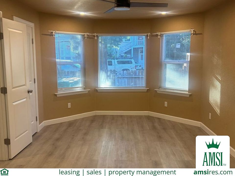Remodeled three-bedroom two-bathroomContemporary designed kitchenPlank flooringWalk-in closetsCentral heatingEnergy-efficient windowsCeiling fans