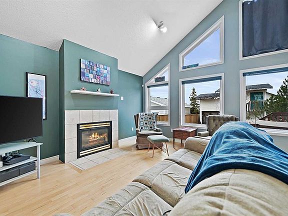 Welcome to this bright and spacious home in Westgate Estates, Crossfield. Set on a quiet street backing onto green space, this property offers over 1,700 sq. ft. of living space with a functional layout and plenty of natural light throughout. The main floor features vaulted ceilings, a cozy fireplace, and a welcoming kitchen and dining area that lead out to the back deck and yard, creating a comfortable space for everyday living or entertaining. A 2-piece bathroom completes this level. Upstairs, you’ll find three bedrooms, a versatile bonus room, and upper-floor laundry. The primary bedroom includes a walk-in closet and private ensuite. The basement is partially finished, offering additional space for storage, a home gym, or future development. Updates include a new hot water tank, dishwasher, stove, washing machine, and garburator. Outside, you’ll find the back deck, a fenced yard with a dog run, a double attached garage, and a durable clay tile roof that adds lasting quality. With a peaceful setting and a layout built for comfort and practicality, this is a great opportunity in Crossfield!