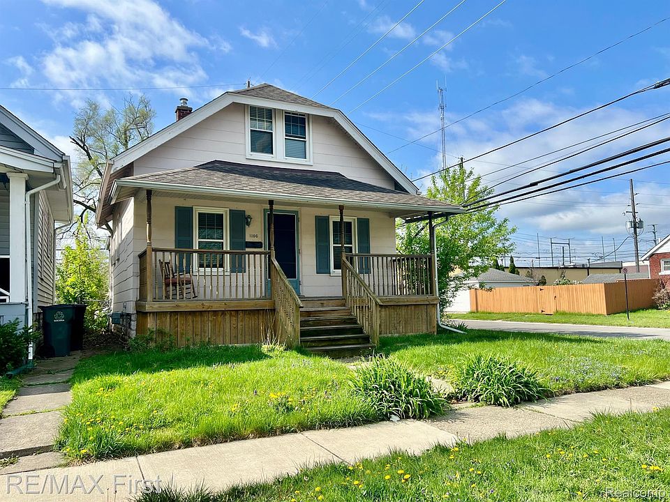 CHARMING CRAFTSMAN BUNGALOW! Beautifully Maintained with Refinished Hardwood Flooring and Natural Woodwork throughout! Gorgeous Bath with Handmade Ceramic Tiles (previous owner was a Ceramic Artist! All Bath Tiles and Sink were Handmade in Pewabic Style!) Oak Cabinets in Kitchen with Refrig, Gas Stove. All Vinyl Windows, Furnace '23, Hot Water Heater '17, Primary Bdrm Carpet '23, Large Covered Front and Rear Porches. PROFESSIONALLY WATERPROOFED BASEMENT with Sump Pump, 6 ft Ceiling, Daylight Windows, washer, Dryer. ** City inspected and Rental Certified Spring 2024. 2 Car Mechanics Garage with Opener and upgraded Electric with 220 V. Fenced Backyard.