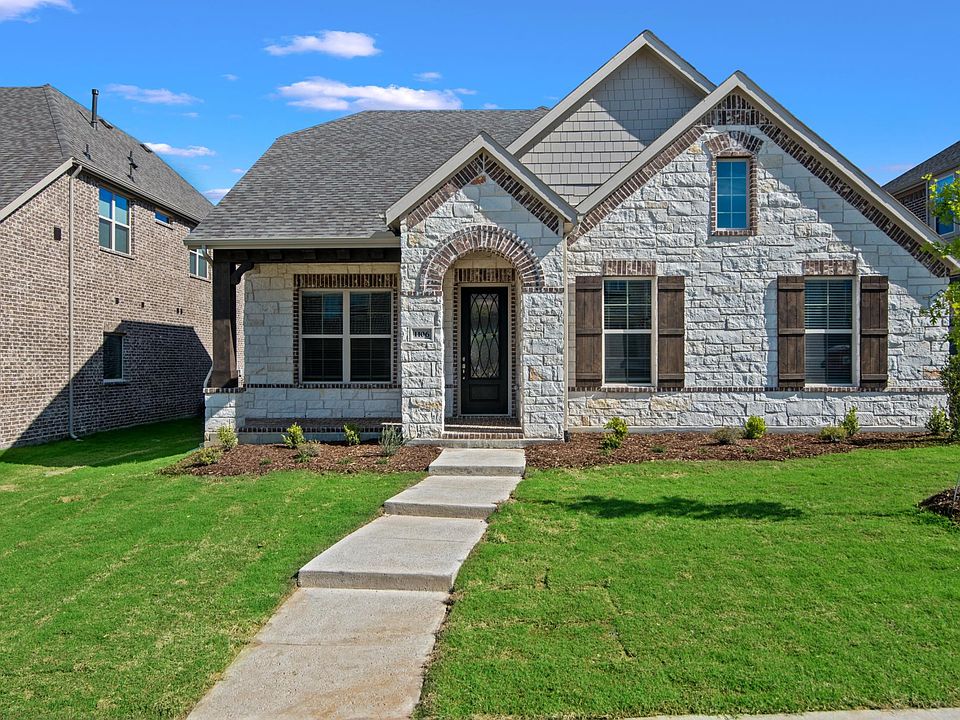 This one story ranch home features 3 (split) bedrooms, 2 baths, study, dining room, covered porch and covered patio and a 2-car garage. The beautiful kitchen includes upgraded stainless steel appliances, large granite island and opens up directly to the living room with a gas fireplace. Enjoy your private study off the foyer with double French doors. Master suite includes a spacious walk-in closet. The master bath has dual sinks and a garden tub. Located in the master planned community of Glen View which is located two miles from the Dallas North Tollway. The community features a Playground, Greenbelt, Pond and some beautiful views of the Bluebonnets in the spring. Near Frisco Square, Legacy West and the Star. Residents are walking distance from all Frisco ISD schools & future Hackberry Knoll Park.