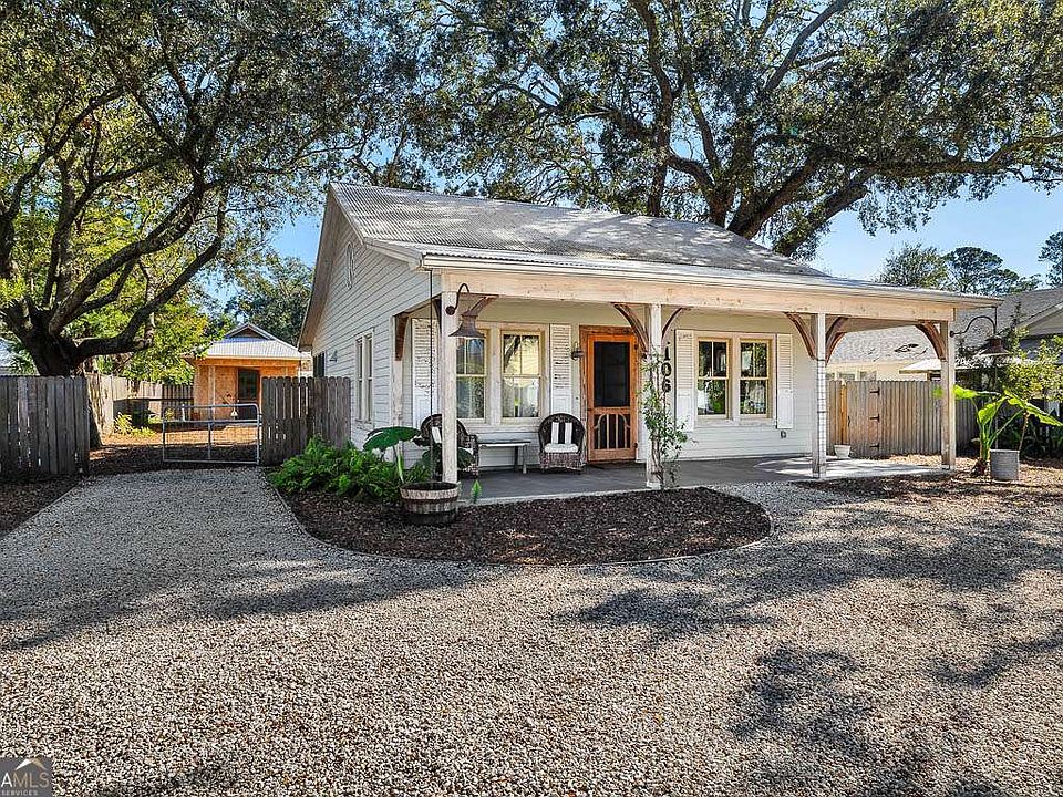 A truly one-of-a-kind getaway located on the south-end of St. Simons Island. This property features TWO cottages (built in 2016 & 2017) This property is also located in a sought after X-Zone with a close proximity to the pristine beaches, ample shopping and dining options. Both cottages were designed with intentional old school St. Simons bungalow style but feature modern amenities. The front home built in 2016 (The Zen Cottage, 840 sqft+/-) with its vaulted ceiling & concrete floors boasts a kitchen with Viking 4 burner range, Viking dishwasher, Frigidaire professional refrigerator, Rohl brass kitchen faucet, full size stackable Maytag washer & dryer & industrial island. This cottage has a huge screened in porch if someone wanted to add a 2nd bedroom to the from house. The smaller rear home built in 2017 (Wabi-Sabi Cottage 628 sqft+/-) has so much character with shiplap, high ceilings & lots of natural light. This home has a stackable Maytag washer & dryer, LVP flooring and a now enclosed porch. Both homes have on-demand Rinnai hot water heaters, spray foam insulation, metal roof, Hardie plank & cedar shake siding. Very short distance to the Village. Property has ample Parking with circular driveway, fenced in yard with a drive thru gate, outdoor shower, shallow irrigation landscape well, citrus trees, herb garden, and plenty of room for a pool! You truly have to see this property to appreciate the craftsmanship.