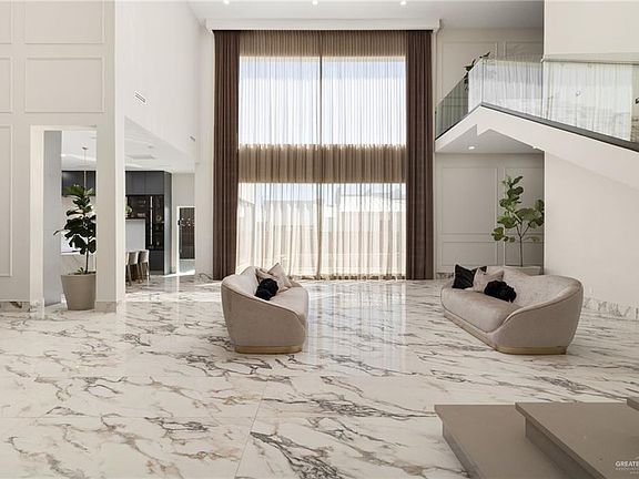 Exquisite 5-Bedroom Home in a Gated Community! This stunning 5,800 sq. ft. residence showcases a sophisticated open-concept design with high ceilings, abundant natural light, and elegant custom finishes throughout. The gourmet kitchen is a showpiece, featuring double islands, floor-to-ceiling cabinetry, and a stylish two-toned design—perfect for both everyday living and entertaining. The spacious primary suite, located on the main level, offers a serene retreat with a walk-in closet and a luxurious bath complete with double vanities and a walk-in shower. The home includes a private office ideal for remote work or study. Outside, there is an incomplete pool, ready to be finished to your style and preference. This home provides both privacy and convenience—walking distance to Sharyland High School and just minutes from premier shopping and dining. With its high-end details, thoughtful layout, and prime location, this residence delivers an exceptional lifestyle.
