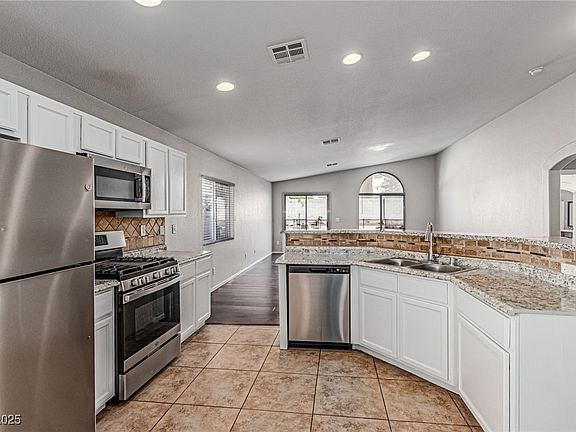 Single-level, well-maintained 4 bedroom, 2 bath home spanning approximately 1,750 sq ft in the coveted Cobblestone Ridge North community of North Las Vegas. Built in 2002, this charming residence features vaulted ceilings in the expansive great room, a breakfast bar adjacent to the kitchen, and a private backyard oasis complete with a pool and spa—ideal for entertaining. Also includes an attached garage, low-maintenance yard, and comfortable modern living. Located near major thoroughfares with easy access to Craig Road, Losee Road, shopping, and area amenities.