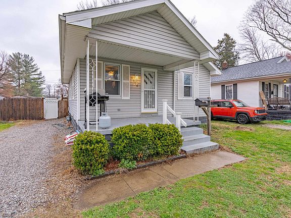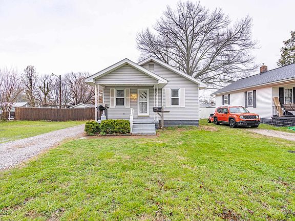 This adorable 2-bedroom 1-bath has curb appeal and an interior to match! The covered front porch greets you as you walk up. Inside the living room boasts beautiful hardwood floors and plenty of natural light. The open floor plan flows into the eat-in kitchen with stainless Whirlpool appliances including a gas cooktop and concrete countertops. Each bedroom has custom sliding barn doors and share a full Jack & Jill bath with vanity and shower/tub combo. The waterproofed, unfinished basement provides plenty of opportunity to make the space your own or use for storage. Out back is a large deck, perfect for grilling or enjoying the weather and a fenced yard. There is a 1 car detached garage and a utility shed with a loft and electricity for any other additional storage needs you may have!