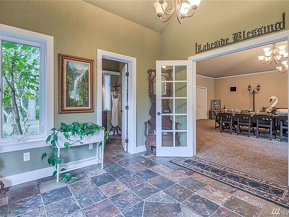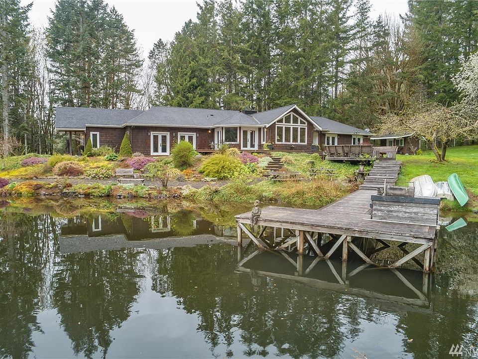 Private Lakeside Home is a 4 bed 6 bath masterpiece of design & craftsmanship featuring 2 kitchens, 2 masters, vaulted ceilings with exposed wood beams, rich colors & stone fireplaces. Designed for entertaining, tiled foyer flows into a huge room suitable for hosting huge gatherings! Home's sprawling layout flows outside thru multi double doors onto full-length deck and dock. No matter the season, you'll have gorgeous views! 2 barns , shop, greenhouse, fully fenced & your own private lake!