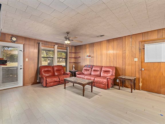 Take a look at this furnished 3-bedroom, 2 bath frame home with central air-heat located in a nice quiet neighborhood!! All appliances (except microwave) and furniture are included with the sale. Home has large bedrooms with ceiling fans and spacious closets! Corner lot location with a water well, storage buildings, a treehouse-playscape and a nice, covered deck across the back of home. Beautiful trees in front and back and the back yard is fenced. Home has 5-year-old roof and attached 1 car garage with opener. Perfect starter home...must see!