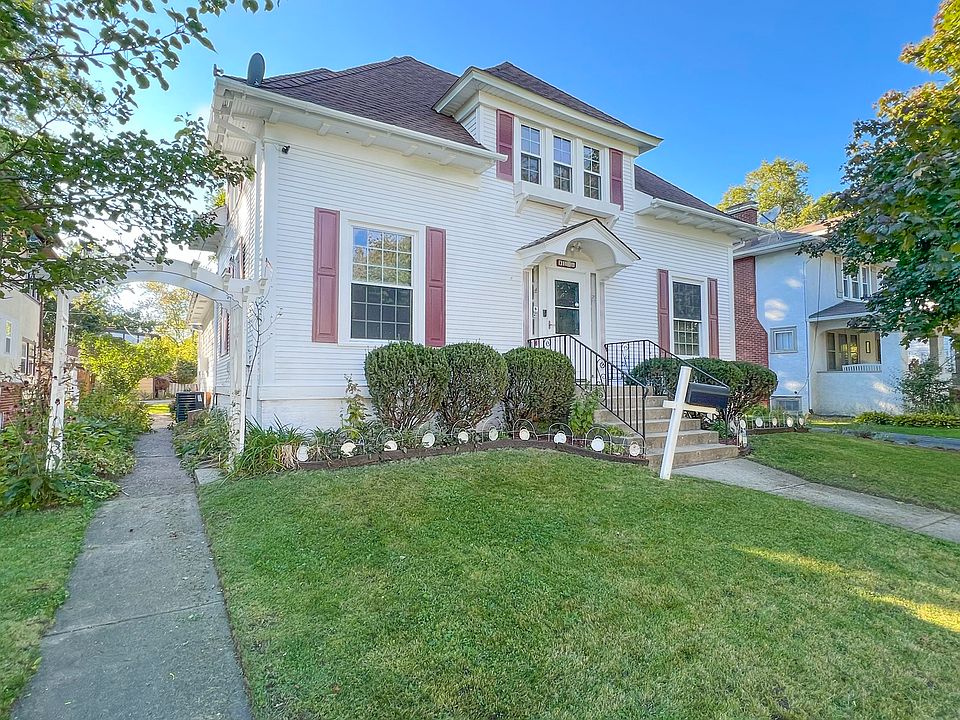 Great 2-story home with large open front living room and huge back family room. 3 large bedrooms with oversized closets upstairs. Beautiful original built-ins throughout. The home has been freshly painted inside and out. Many updates and new kitchen countertops and painted cabinets. Small bedroom on the main floor. Updated and newer bathrooms. All newer windows throughout. Separate dining room. Move-in ready with a cute yard, mature trees, and a back deck for entertaining. Brick paver walkway. Plenty of parking and garage space.