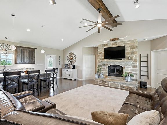 Welcome to your dream country retreat! Situated on over 15 acres, this beautifully maintained property offers the perfect blend of rural charm, modern amenities, and self-sufficiency all just approximately 20 minutes from Sherman and 35 minutes from McKinney. The home features wraparound porches, a wood-burning stove insert in the fireplace, spray foam insulation for energy efficiency, and a whole-house generator. The oversized garage includes an 8x18 door, providing space for trucks and storage. Inside, you'll find stunning knotty alder custom cabinets, adding warmth and character. The expansive kitchen is designed for both function and gathering, featuring an extra-large island and a huge walk-in pantry—perfect for entertaining or stocking up for country living. A spacious laundry and mud room offers room for organization and storage. Enjoy outdoor living with a gorgeous 2-year-old pool, a hot tub and slide, with fencing. A covered patio provides space for relaxing or hosting, and an outdoor bathroom with a sink and shower for rinsing off after a swim or a working outside. A 30x50 shop adds versatility, featuring paid-for solar panels, an 8kW Outback inverter, and backup batteries to help keep electric bills low and power running during outages. Inside the shop, you'll find guest quarters with a kitchen and full bathroom, with the option to expand the space if desired. The land is fenced and cross-fenced with 2 pastures for separating livestock. A lean-to provides shelter for animals, and the property includes a chicken coop, peach, pear, plum, and persimmon trees, along with mature pecan trees. An agricultural exemption is in place, helping to keep property taxes low. Additional features include a water filtration system for the main home, security cameras, a storm shelter for added safety, and a automatic gated entrance. If you’ve been dreaming of peaceful country living with every amenity already in place, this property checks all the boxes. Welcome home!