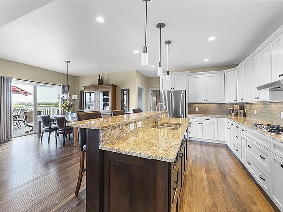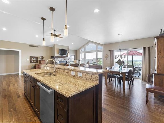BEST VIEW IN WAUNAKEE! Perched atop a hill sits this immaculate & spacious 6 BR/3BA custom ranch. Nearly 4,000 SF of impressive finishes, incl. hand-scraped hickory floors, Amish cabinets & built-ins. Open & vaulted main living area is drenched w/natural light & feat. cozy gas FP & built-in desk. Gorgeous kitchen offers large WIP, granite, glass tile backsplash & SS apps w/dbl oven. 3 beds upstairs incl. well-appointed owner's suite w/walk-in tile shower, Kohler soaking tub, dual vanity, separate WC and WIC w/built-ins. Beautiful LL w/ stunning kitchenette/wet bar, Amish built-ins & 2nd gas FP. Full walk-out, perfect for entertaining! Enjoy the lovely pro-designed landscape from the maint.-free deck or patio, complete w/privacy screens. Solar installed. Organic vegetable garden beds. Organic fruit trees (Cherry, pear, plum and nectarines). Invisible fence installed. Lot backs to other backyards/greenspace. A must see!