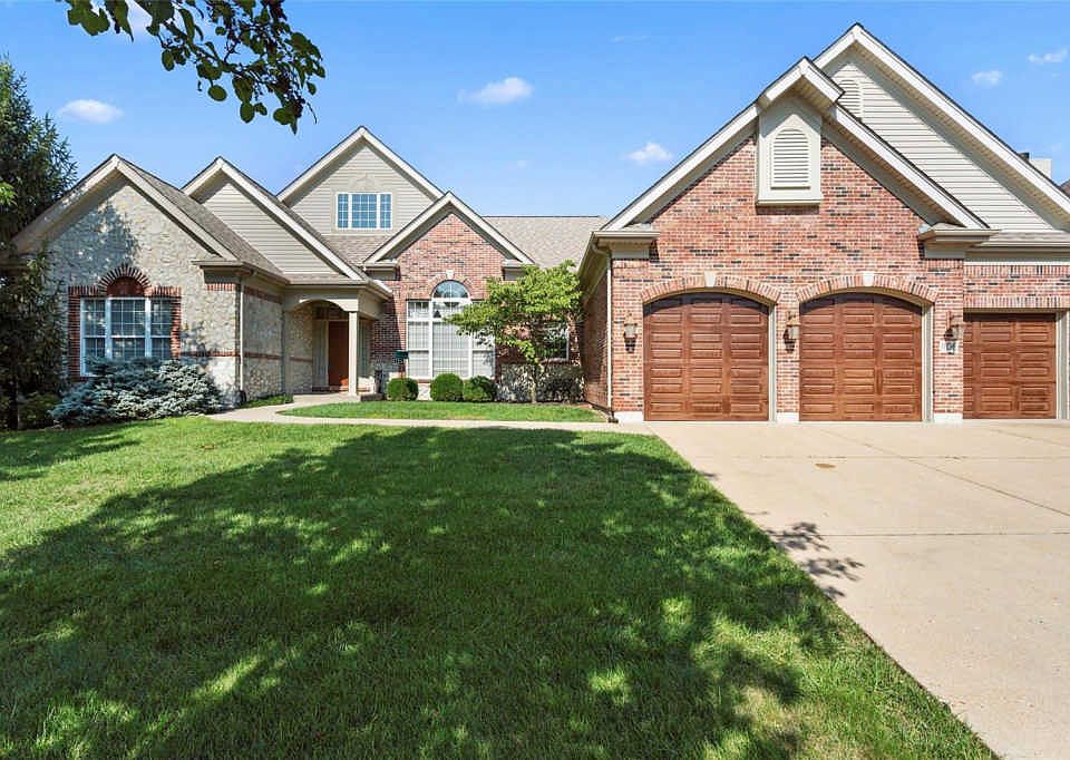 Driving up to your Atrium Ranch Estate home you will feel the opulence of the stone and brick framed by oversized gables. You will be drawn to the open floor plan with soaring vaulted ceilings, tons of natural light and elegant arches. Your home will be the envy of entertainers. Enjoy the oversized dining area with room to grow for holiday gatherings! Preparing meals or just popping popcorn, you will find the kitchen youâve always wanted with tons of cabinet space, stainless steel appliances, granite countertops and center island/breakfast bar! Spilling into the breakfast and hearth rooms, bask in the warmth of a gas fireplace and a view out the sliding door to even more entertaining space on the beautiful deck! Retire into your master suite with spa-like tub, oversized shower, separate vanities and walk-in closet. You will be amazed at the extra space available in the finished walkout lower level that boasts a 9â pour! The only thing missing is YOU in this Rockwood School subdivision.