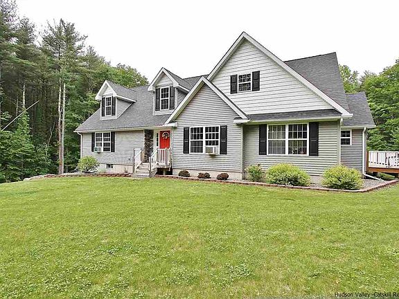 Sprawling newer construction home is nestled just outside the Village of Catskill and close to all quaint neighboring Towns/Villages, the Hudson River waterfront and ski areas. Built in 2012 this well constructed home offers 3 bedrooms on the first floor and two full baths. The living room, dining room and kitchen all conjoin together offering a great open space perfect for family gatherings and entertaining. The kitchen is graced with all Cherry cabinets, sleek black appliances and a huge island with breakfast bar. Just off the kitchen is an expansive wrap around deck overlooking the mature private backyard and woods in the distance. Upstairs has been nicely finished with a 4th bedroom and large den area, this could be a second master suite or a great family living space. The lower level is walk out, 9 foot poured concrete walls, with high efficiency heating and finishing possibilities are endless here.