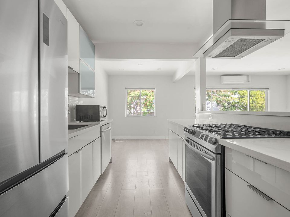 Newly remodeled mid-century One Bedroom tucked away in the rear of a private courtyard and your private urban hideaway! Many windows create a bright and shiny atmosphere! The unit is glistening with brand new everything!