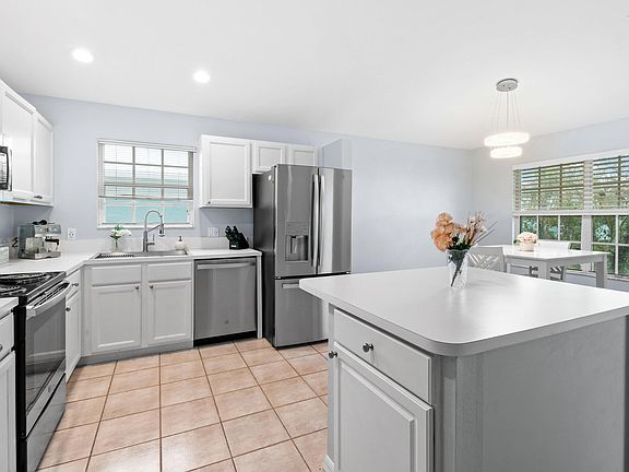 Meticulous open and bright 2nd floor unit, 2 Bedroom, 2 Bath condo unit that has tile floors throughout and laminate floors in the bedrooms. Freshly painted, Newer GE Kitchen Appliances, Open Kitchen Concept with an Island, dining room and Family room and split bedrooms. There is a screened in balcony that overlooks a beautiful lake. A/C and Nest Thermostat 2019 and Water Heater 2019