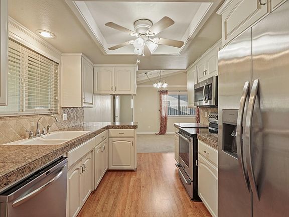 This residential property presents an inviting home ready for you to move in. The kitchen is a bright & airy space, enhanced by a kitchen window that washes the room in natural light, while the backsplash provides a stylish accent, & the tray ceiling & crown molding add an elegant touch. The Living rm offers a warm and inviting atmosphere, defined by a beautiful brick fireplace that serves as a natural focal point, while the beamed vaulted ceiling create a sense of spaciousness & the wood ceiling adds character. The sliding glass doors allows you to step out onto the back patio. Formal dining room. The fourth bdrm would be a perfect den or playrm. The bedroom is enhanced by crown molding adding a touch of sophistication. Relax & rejuvenate in the bathrm bathroom that features therapeutic luxury bath jacuzzi walk in tub. (2013) Enjoy the Cali sunshine in your own private pool, & the patio offers an excellent space for outdoor dining or relaxation, while the fenced backyard provides privacy. The backyard is on the east side so enjoy your coffee in the morning sun. This property offers the perfect blend of comfort & style, creating an exceptional living experience. Vinewood School New A/C 2019, New Heater 2012 New Roof 2011, New Windows 2011, Pool Resurface & New Pump 2025, New Re