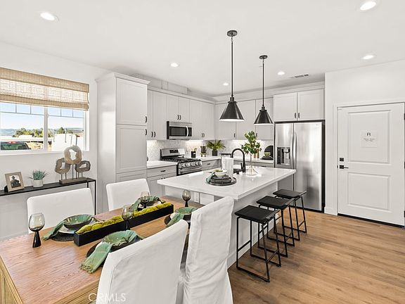 Exterior location with wrap-around entry porch at R @ Righetti in the Righetti Ranch Master Plan. R @ Righetti features exceptional townhome living in two spacious townhome floorplans being built in small buildings of 4 - 6 homes in a contemporary Farmhouse architecture. Each home has an attached 2 car garage, 3 bedrooms, 2.5 baths and conveniently located upstairs laundry room. This home features a large front porch opening to a large Great Room with Dining Area and an expansive kitchen with a suite of LG stainless steel appliances. A contemporary single bowl sink with pulldown faucet sit in the island with countertop seating and pendant lighting. A Powder bath with stylish pedestal sink completes this floor. Upstairs are the Owner's Suite and 2 additional bedrooms sharing a large bath with linen and double sinks set in quartz countertops. The Owner's Suite is bright with large walk-in closet and luxurious bath with double sinks and a large shower with seat. One of the best features is your ability to personalize your home. A designer is made available to you to select from included options like ceramic tile flooring in your kitchen, baths and laundry, 2 colors of Thermofoil cabinets and quartz countertops or more individual options like plank flooring, designer lighting and backsplashes or accent tiles in your bath. The home is equipped with Solar for your lease or purchase. The Righetti Master Plan enjoys hiking and biking trails, open space and natural vistas. The City will be building additional amenities including a neighborhood park in the future. Photos and virtual tour are of the model home.
