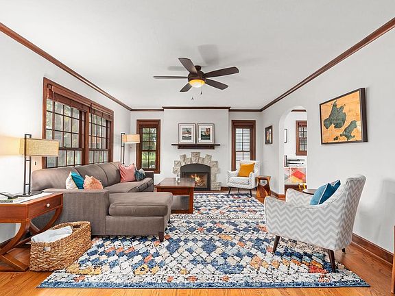 This timeless Nakoma home blends classic charm with stunning modern updates, just steps from the golf course on picturesque Tumalo Trail. Fully renovated with gleaming hardwood floors and new windows throughout. The updated kitchen (2016) opens to a dining area with pristine, original built-ins. Enjoy a spacious living room with a gas fireplace, a cozy 4-season sunroom, a mudroom, and powder room. Upstairs features a luxurious primary suite with walk-in closet, double sinks, walk-in shower, and private toilet (2020), plus three additional bedrooms and an updated bath (2020). The finished lower level offers a second fireplace and bar-perfect for entertaining. Outside, relax on the patio or enjoy the large yard with mature trees. Move-in ready and close to everything!