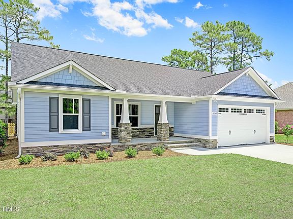 Welcome to a new coastal style of living in Boiling Spring Lakes! This 1299 heated sq. ft. home by Travis Cruse of Cruse Construction lives larger than it feels by maximizing space and minimizing hallways. The stylish craftsman elevation includes tapered pillars, stone accents, and classic shake siding. Inside feel like you're living at the beach with features like cove crown molding, shiplap accents and elegant, coffered/tray ceilings. The inviting front porch welcomes you into an open floor plan with the kitchen overlooking a living room, dining area, and screened porch. The popular split bedroom floor plan features a 13.5 X 14.4 master retreat with a spacious walk-in closet. The master bathroom has 2 vanities and a spacious walk-in shower. The 2 guest bedrooms and shared bath are located on the opposite side of the home for privacy. As a Cruse Construction standard Travis uses attractive Olde Southport style door/window headers, granite countertops throughout, soft close drawers/cabinets throughout, durable LVT/LVP flooring throughout, craftsman panel interior doors, and ceiling fans in every room. Cruse Construction also meets the demands for energy efficiency with a beefed-up insulation package, raised slab foundation, Trane heating/cooling unit, and a radiant sheathing barrier in the attic. This home is not constructed yet. Buyer will have the option to make certain selections throughout the building process. Please note that the pictures are only representative of the house. The home will be vinyl sided and there will be no fireplace inside.