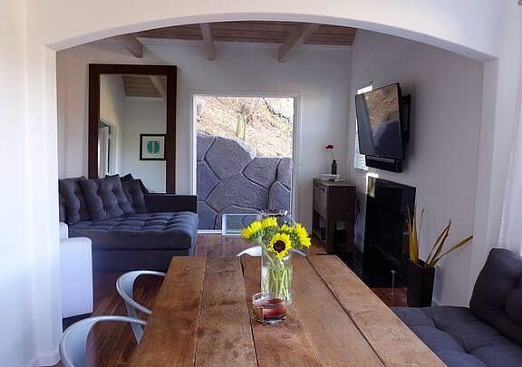 Beautiful hillside standalone 1 bedroom + 1 bathroom house located in great centralized location. Is one of two standalone homes on the property. Very bright, updated, and clean, in quiet and private setting. Stainless steel kitchen appliances and granite kitchen countertops. Kitchen appliances include refrigerator, microwave, stove and dishwasher. Also includes full size washer and dryer. Full bathroom complete with shower/tub. New fresh paint throughout. Includes HVAC unit with heater and air conditioning. Interior is 650 sq ft, and is wrapped by 400 sq ft exterior deck, and also includes 250 sq ft private secure garage that fits one full size vehicle with plenty of room left for storage. Will be delivered empty. 12 month lease. All utilities included: water, power, sewer, trash, gas, gardener and landscape maintenance. Will consider dog or cat. Great location, close to everything. Available October 20.