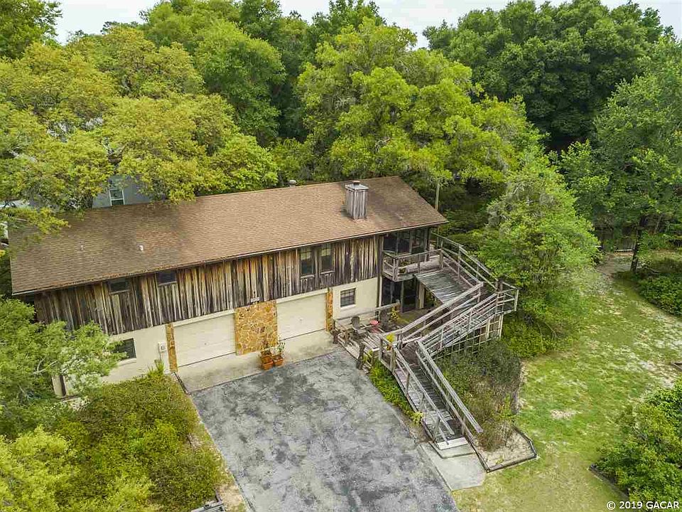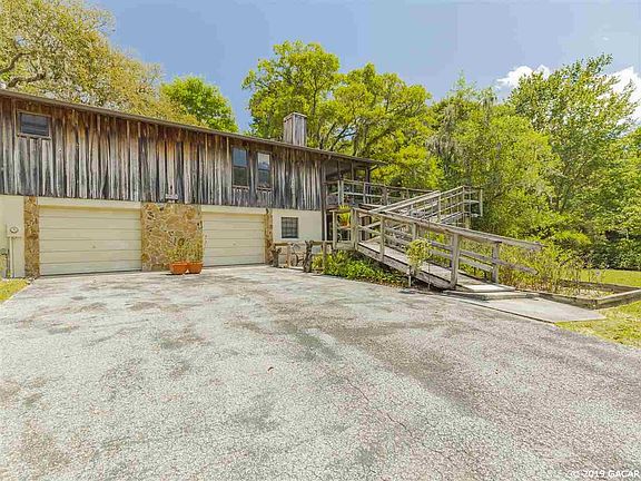 Custom built home clad in Cypress on a large beautiful lot just a short walk to the Rainbow River and the Rio Vista community park. 1300SF living area upstairs featuring 2-bedrooms and 2-full baths, great room with a stone surround wood burning stove, wrap around deck and screened porch overlooking the beautifully maintained gardens. The view is like looking out from a wooded cabin in the Smokey Mountains! Downstairs features approx. 221SF living area with a full bathroom, a 2-car garage, workshop and screened porch. Out buildings include smokehouse, firewood storage bldg., 2 storage buildings, and a greenhouse. Raised beds throughout the gardens offer easy access to your plants and flowers. Beautiful trees provide a shaded, tranquil vacation atmosphere on the property that you must visit to experience.