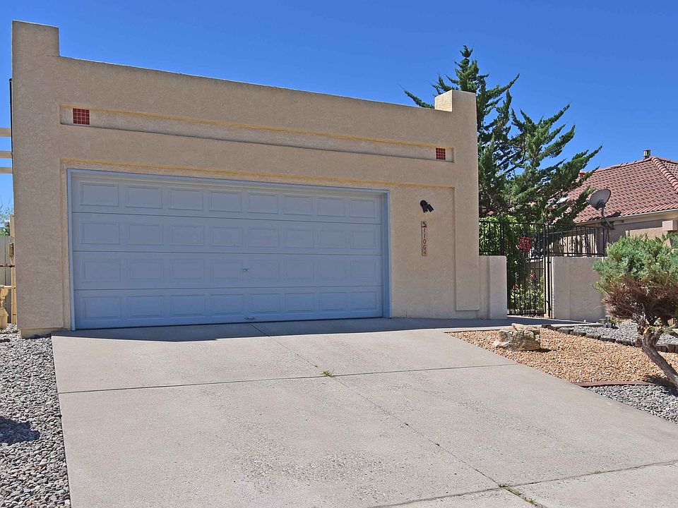 Refrigerated Air Conditioning, natural gas heat. Large 2 bedrooms, 2 bathrooms. Patio home in desirable Academy Ridge neighborhood; 2 blocks south of Academy Rd between Tramway and Eubank. 2 car garage. Kitchen: dishwasher, refrigerator, electric range/oven, walk-in pantry, Corian countertops. Living Room/Dining Room: 10 foot ceiling, spacious area with gas fireplace, sliding door to a covered patio. Large bedroom: sliding door to covered patio. En-suite bathroom: shower, 2-sink vanity, laundry room with new washer and dryer. 2nd bedroom: faces front courtyard area. 2nd bathroom: combo tub/shower. Outside: Low maintenance desert landscaping. In addition to a 2-car garage at the front of the house, there is a covered carport that could be used as a second large patio area that can be accessed from an alley that runs behind the house. If interested, tell us a little about yourself and request a tour. Please be very careful of online scams. Scammers frequently copy photos of listed properties and re-post them as another listing, then attempt to get money from a prospective renter. We DO NOT advertise on Craig's List. Never pay any money until you have viewed the property and signed a lease. No smoking unit. Small dog(s) only with owner approval; no pitbull, rottweiler or mix thereof. Refundable pet deposit $300. Proof of current vaccinations required for pets. 1 year lease with a provision that lease may be renewed for a second year without a rate increase. Owner provides water, sewer and trash pickup. Tenant responsible for the cost of electric and gas. If tenant desires tv/cable/internet/phone or alarm monitoring, then it will be the tenant's responsibility. Security deposit required to take house off of the market and will be due when the lease is signed. At time of move-in, first and last month rent due as well as proof of renters insurance policy.