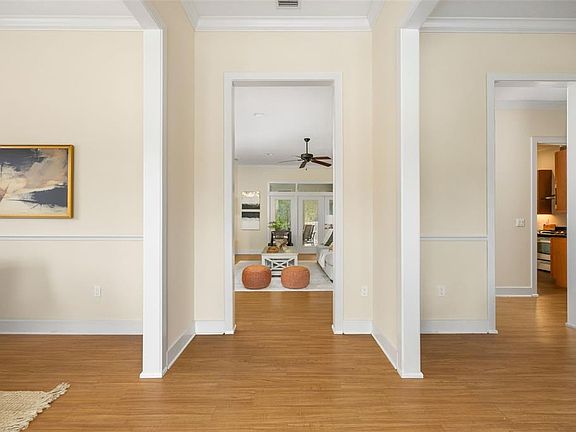 Welcome to elegant living in the highly desirable Ridgemont neighborhood! This meticulously maintained home offers a perfect blend of modern comfort and classic style. The open floor plan creates a bright, airy feel, ideal for daily living and entertaining. Step inside to appreciate the quality of design, including beautiful hardwood floors throughout and an abundance of decorative molding that adds timeless character. The chef's kitchen boasts rich wood cabinets, sleek stainless steel appliances, and a premium gas range. The flexible layout offers dedicated spaces for every need, including a formal dining room and a separate, versatile secondary living space that easily functions as a professional home office or den. Relax in the family room centered around a cozy gas fireplace. French doors lead to your private outdoor retreat: a spacious, covered lanai featuring an attractive brick pavered floor, perfect for year-round enjoyment. Experience the best of Gainesville in this exceptional property!