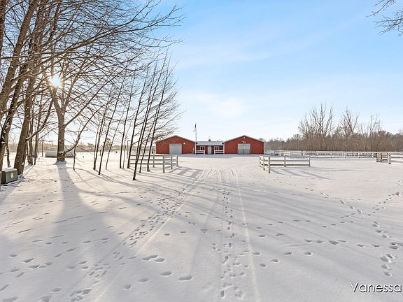 Welcome Home to this incredible Horse Farm on 15.5 acres with so much to offer including a separate living area with a full kitchen. Outside offers BRAND NEW ROOFS on both barns and 1/2 of the home. 2 barns are 5200sqft & 32.5x160 with a 24x32 heated office. Barn 1 offers 7 single horse stalls (can add 3 more), 3 double stalls (can add 1 more), hot & cold horse washing station, running water to each stall, 2 having auto water stations, frost free water pump, hay storage, & tack areas. Barn & home have separate tankless H2O heaters. Barn 2 is an open canvas for additional stalls & storage leaving plenty of room to board horses. 4 pastures, 150x175 outdoor arena, 2 work pens, 1 round pen, & riding trail. Fish out of the spring fed sandy bottom pond loaded with enormous pike, gills, & bass Interior photos speak for themselves with fresh paint and trim throughout! The 4 foot crawl space with full storage is climate controlled and so much more!
