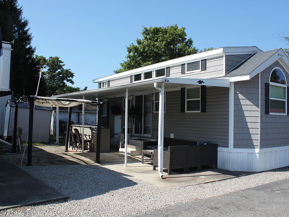 If you're looking for an affordable , low maintenance lake get-away that offers the total package of a park model and boat this is it. This beautiful fully furnished 1 bedroom, 1 bathroom 2014 Island Series park model and a 2022 Cabrio Barletta boat is located behind Froggies in the RV park. The interior features a spacious open concept living room and kitchen with a cozy sectional sofa, TV, ice maker, microwave, and full size refrigerator. New air conditioner unit in 2024. The main bedroom includes a queen bed with plenty of storage. The loft offers extra sleeping space with 2 additional queen size beds. To enjoy the outside, kick back and relax in the full-length covered patio that boasts a large dry bar with bar stools, TV, fire ring, outdoor patio furniture, and an additional canopy cover. When you are ready for a boat ride, enjoy your 2022 Cabrio Barletta captain chairs boat that features a Mercury 150 motor. Lot rent is paid through April 2026! Lot lease for 2026 is $2,200 and covered boat dock with lift lease is $1,700. Call today for a private showing!
