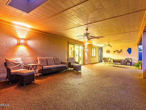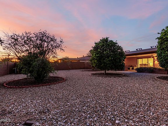 Desert retreat living at its finest in the vibrant active adult community of Sun City! This lovingly maintained 3 bed, 2 bath home radiates pride of ownership with a charming courtyard, easy-care landscape & 2-car garage with custom storage. Inside, enjoy two inviting living areas & a cheerful kitchen with stainless appliances, new quartz counters, walk-in pantry & modern stove. The main suite offers a walk-in closet & step-in shower, while a bonus room suits crafts or guests. With 40+ solar panels for energy-efficient living, newer HVAC, fruit trees & a covered patio with misters—plus nearby golf, rec centers, shopping & dining—this home truly has it all!